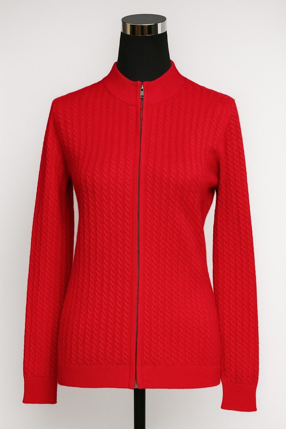 Cashmere Cardigan T-Neck with Cable & Zipper