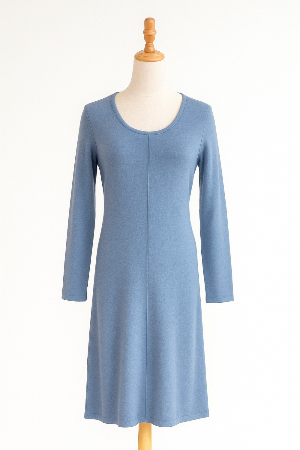 Cashmere Dress R-Neck Roll Trimming Vertical Link