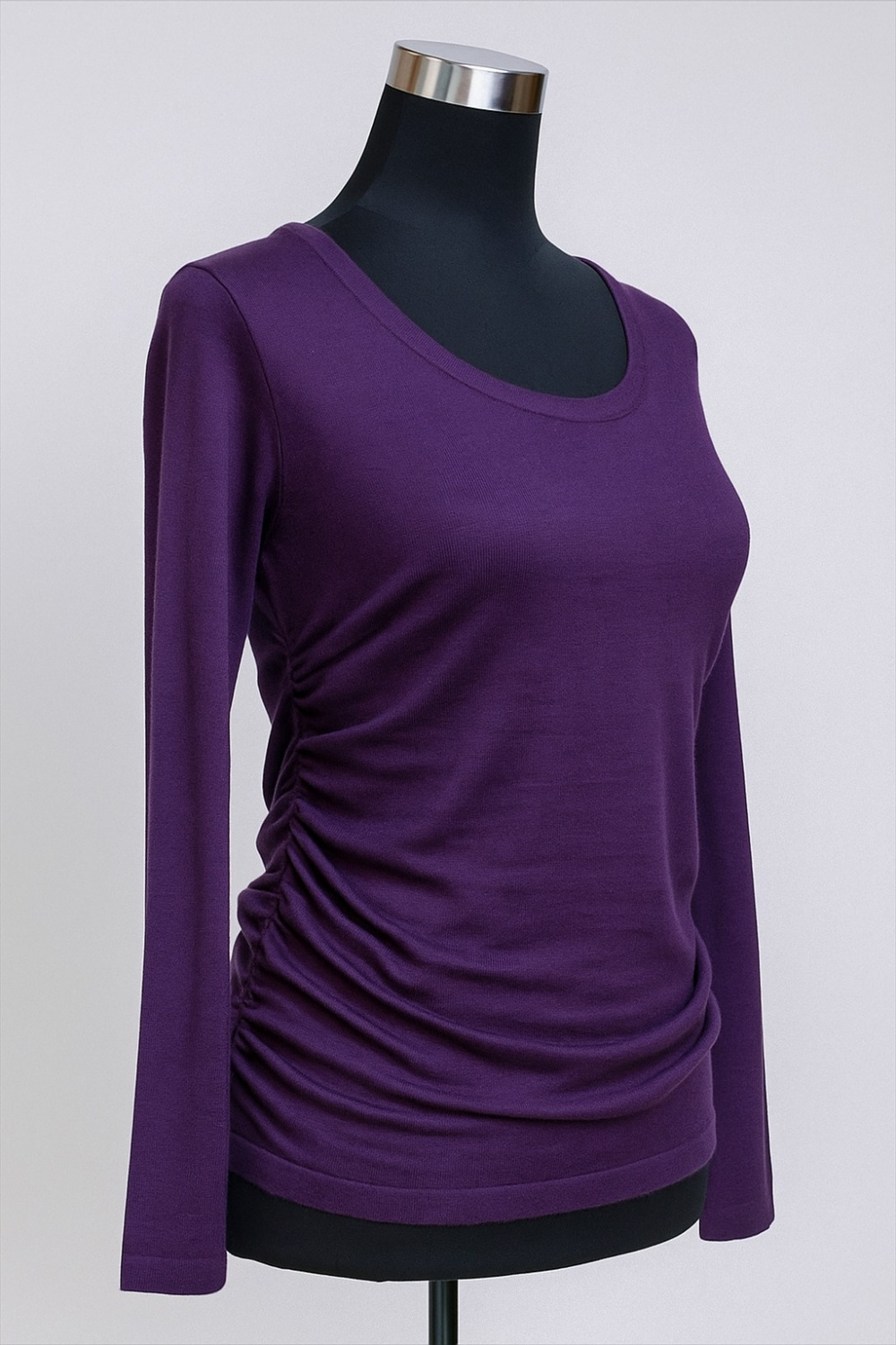 Cashmere Scoop-Neck Pullover Waist Gathering