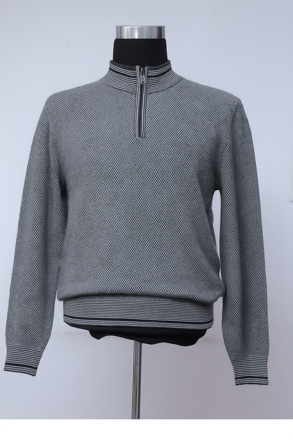 Cashmere T-Neck Pullover with half Zipper & Honeycomb Knit